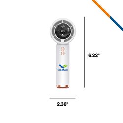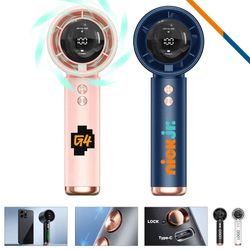 Raines 100 Speeds Turbo Mini Handheld Fan is a perfect cooling companion in Summer. Made of durable and lightweight ABS Plastic, PP, and PC material, this mini handheld fan can easily be stored in your backpack or pocket. With a 100-level speed stepless control, you can adjust the wind speed to your desired level. Short press the button and you can switch gears. Long press the button and you can adjust wind power level. With a low-noise and powerful turbo motor, It can give you a cooler and quieter experience. Powered by 3000mAh battery, it could be fast recharged via Type-C port (charging cable included) and last for up to 12 hours. LED digital screen is designed to show the wind speed level and battery life in real time. The AI protection chip and safety lock for switch are designed to ensure safe use. Customize it with your logo or website to get your brand highly promoted. Suitable for traveling and fishing.